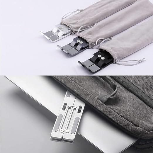 Crafted from premium aluminum, this stand holder boasts remarkable durability and solidity while remaining incredibly lightweight. Its foldable design makes it easy to pack and carry, perfectly suited for professionals and students on the go. Compact yet sturdy, the stand accommodates laptops from top brands like MacBook, HP, Dell, and Lenovo, ensuring compatibility and versatility for all types of devices. The anti-slip base ensures stability, preventing your laptop from slipping or wobbling during use.